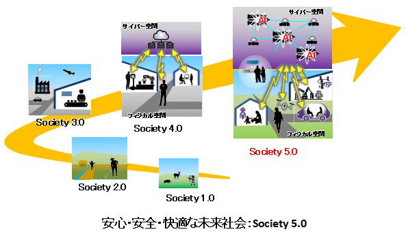 4.0)に続く新たな社会であるSociety 5.01)の実現をめざしています. Society5.0は,サイバー空間(仮想空間)とフィジカル空間(現実空間)を高度に融合させたシステムによって実現される人間中心の社会(Society)です.