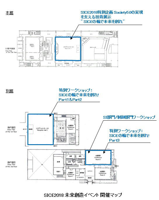 特別企画”SICE2018 未来創造イベント”は,SICE2018と同じ下記の場所にて開催します.各特別企画の開催場所は